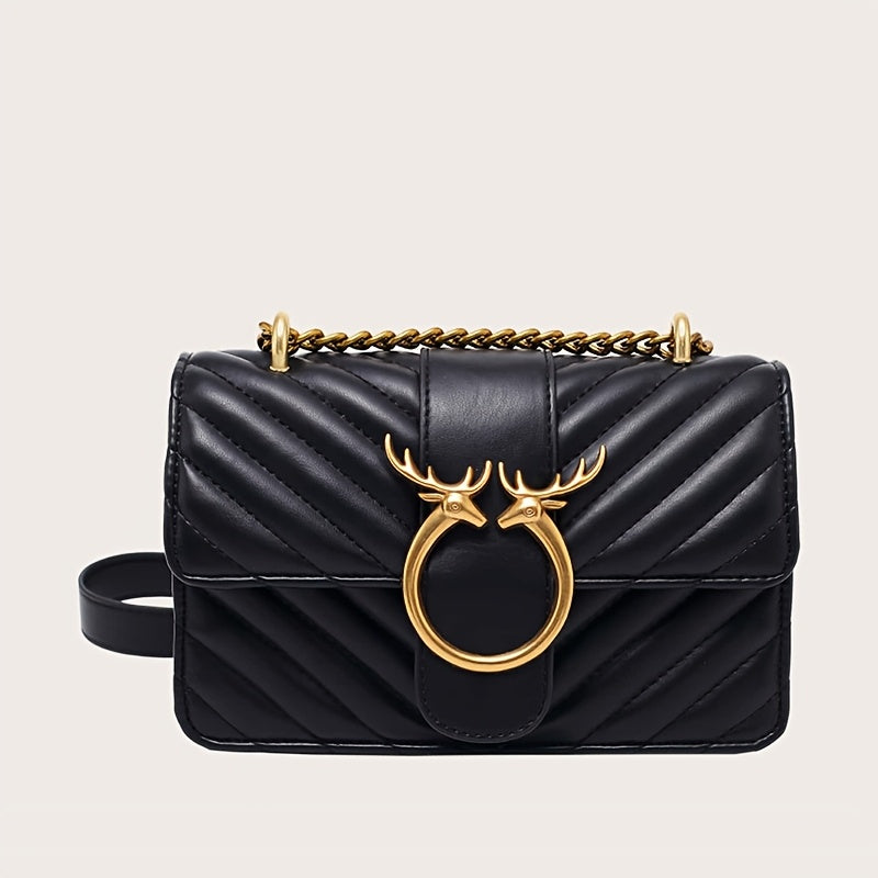 Chic Black Chevron Shoulder Bag with Golden